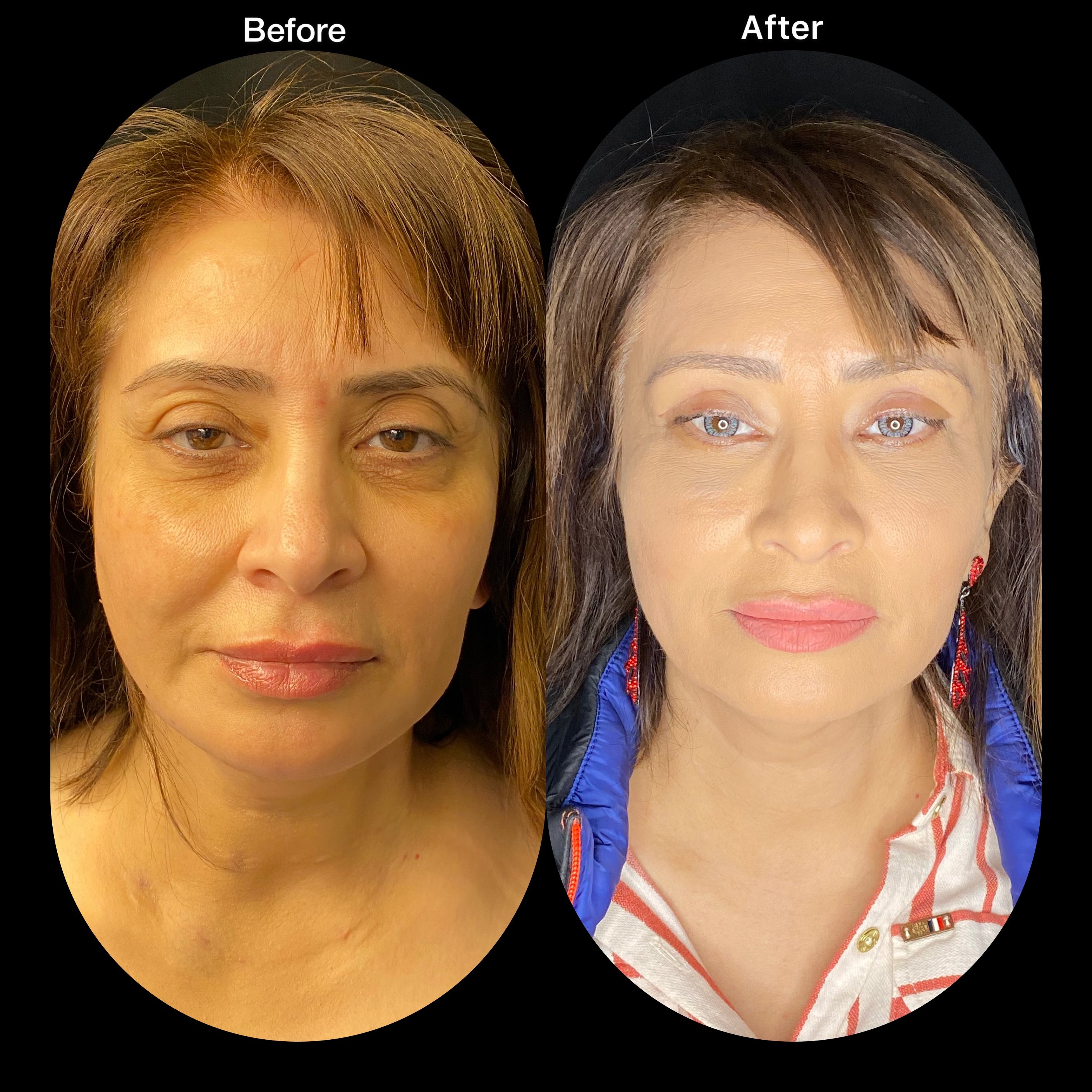 Dərin Plan üz gərmə (Facelift) Əməliyyatından Sonra İzin Görünməsi Üz gəncləşdirmə əməliyyatından